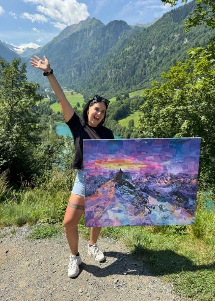 VIELEN VIELEN LIEBEN DANK nochmal ❤️ für mein wunderschönes Erfolgsbild. Es ist mein Gipfelsieg: dass ich es geschafft habe und dass ich wieder gut unten war eigentlich. Ich hab schon den perfekten Platz gefunden, über meine Couch, daneben sind meine schönen Skier. Ich freue mich so sehr über das tolle Bild.